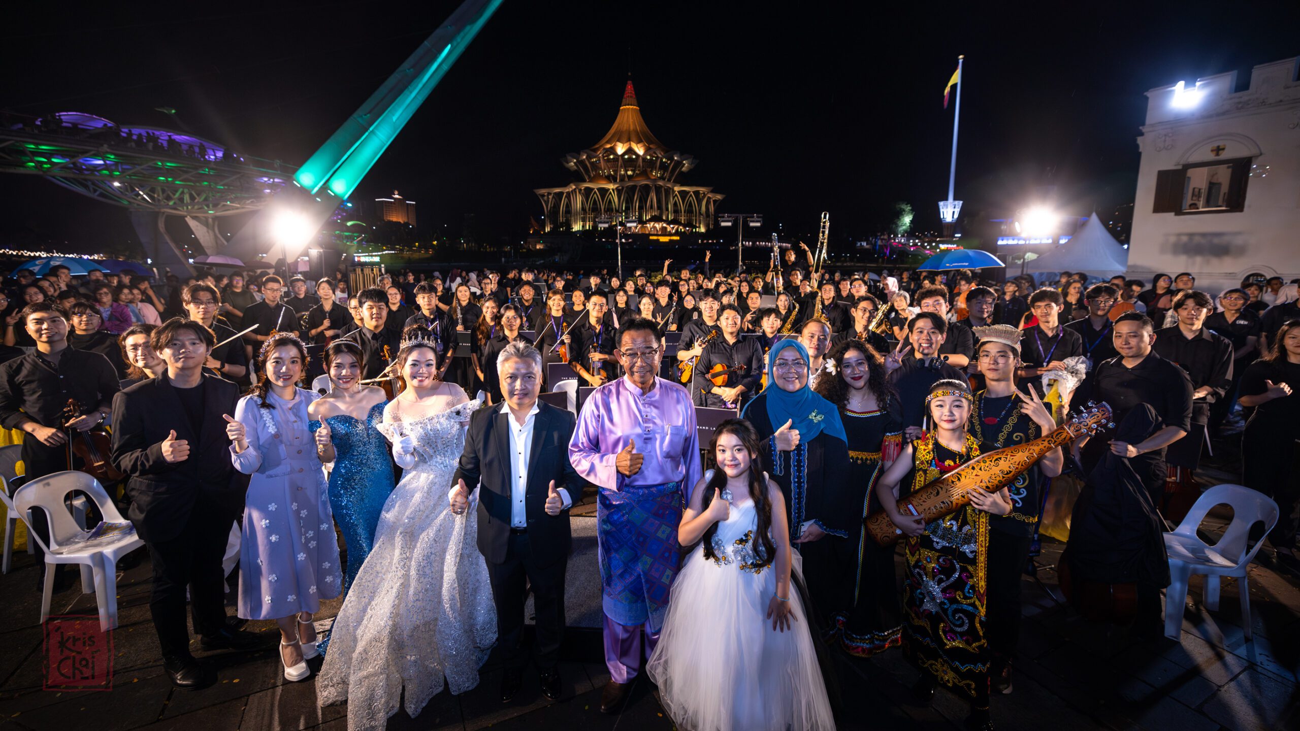 'A Waterfront Spectacular' was proudly supported by the Ministry of National Unity and the Ministry of Tourism, Creative Industry and Performing Arts Sarawak, with strategic partners including Century Music School, AOrchestra, Hero AVL, Averlution Live Streaming, KTT, Praise Million Sdn Bhd, MG Couture, Lucia Martina, Iris School Of Ballet, Sunnydale 1928 Events, Old Court House, Dalieyfazdly Collection, SJ Bornoe and PyroMaster Pyrotechnics & Events.