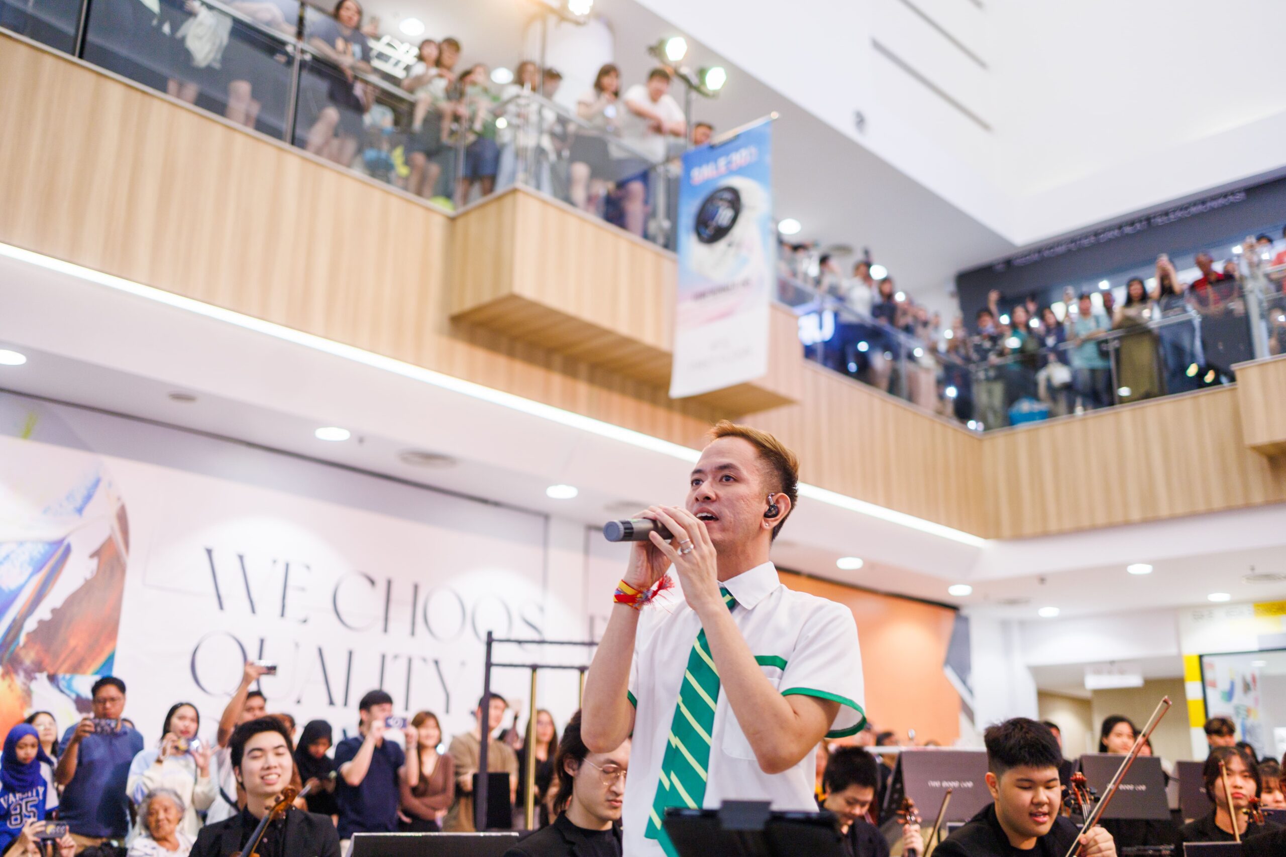 The performance, which captivated hundreds of shoppers, featured a solo vocalist, Dell Lawrence, who is also the President of The Voice Lab.