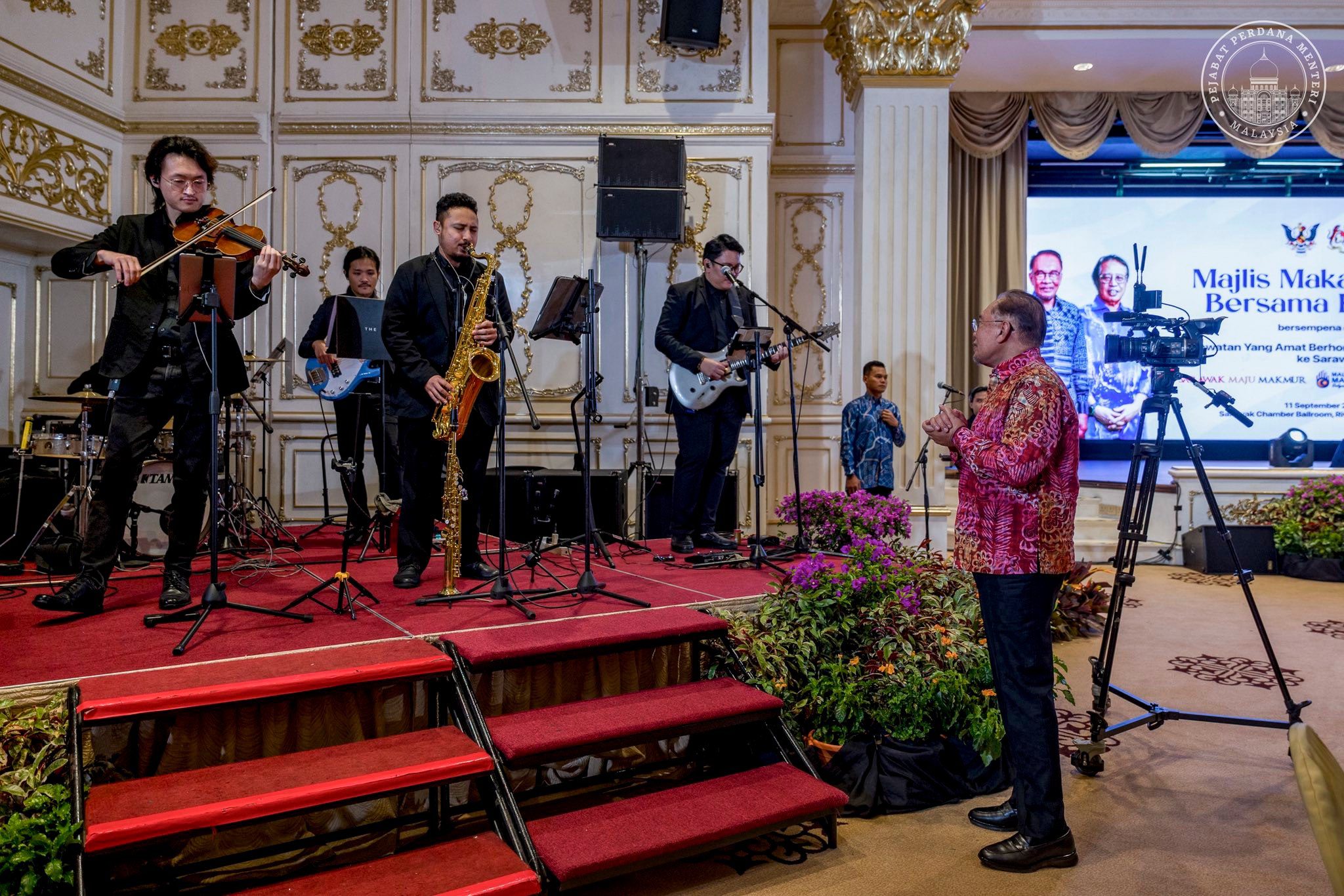 It was a truly unforgettable night for The Band Lab. We were honoured to be invited to provide entertainment for the “Majlis Makan Malam Bersama Komuniti,” a community dinner held at the Riverside Majestic Hotel in Kuching on 11 September 2025. The event was held in conjunction with the visit of Prime Minister Dato’ Seri Anwar Ibrahim to Sarawak. Â